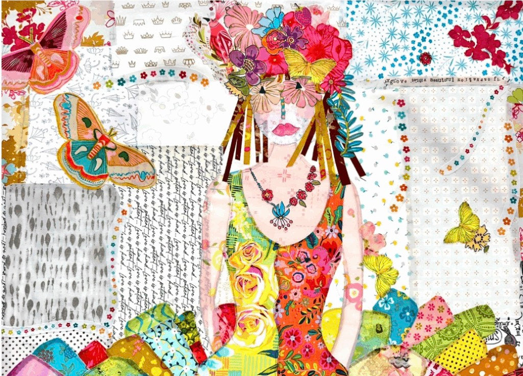Mia Collage bursts with vibrant colors and layered textures, turning fabric into joyful expression. Each element is intentionally placed to create movement and harmony-a bold celebration of creativity through cloth and color.