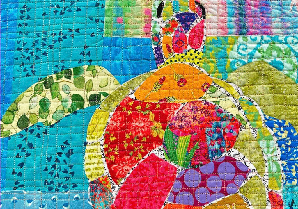 Seawell Collage evokes the quiet depth of the ocean through a gentle gradient of fabric, moving from dark to light with intention and grace. Each layer flows like a rising tide, inviting calm and reflection. It’s a serene piece that brings the beauty of nature into view-one stitch at a time.