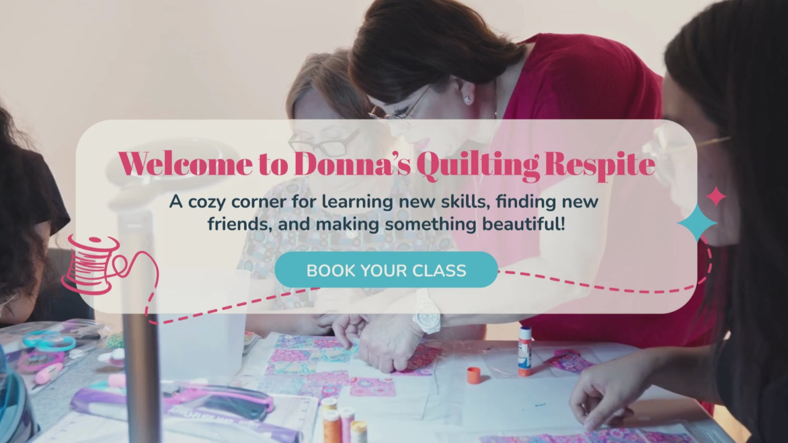 “I never thought I could quilt, but Donna’s patient and encouraging teaching style made me feel confident from the start. She breaks each step down so it’s easy to follow, and by the end of my first class, I had a project I was proud to take home.”