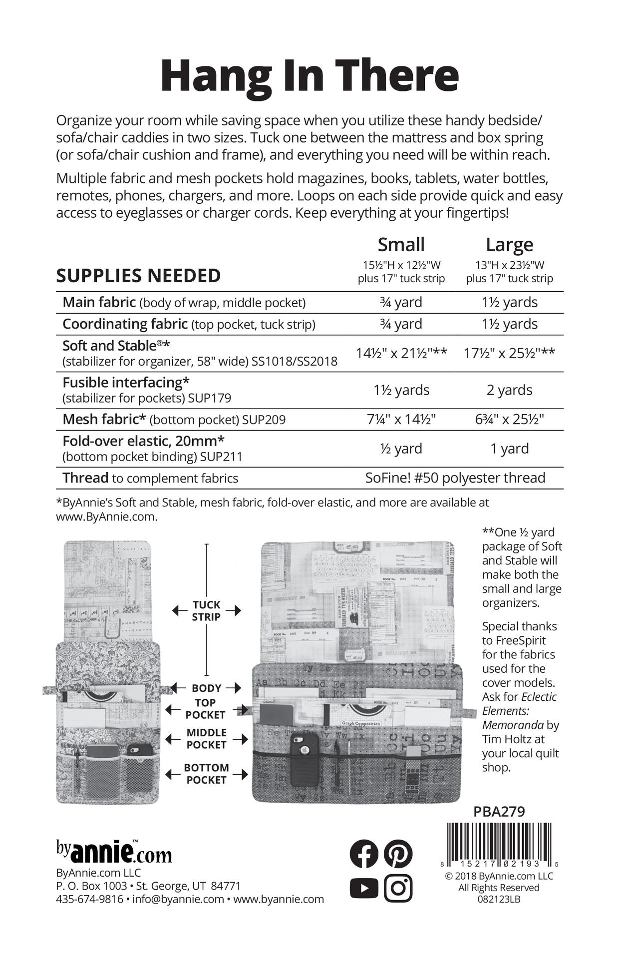 The pattern includes instructions for organizers in two sizes: