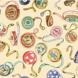 This sewing themed collection combines a fresh palette, paired with Louise Nisbet’s signature hand drawn elements. Filled with thread, sewing machines and buttons, these 19 prints will make you feel crafty right away. “Sew Pretty” is perfect for quilts, sewing machine covers, pin cushions, aprons, and more.