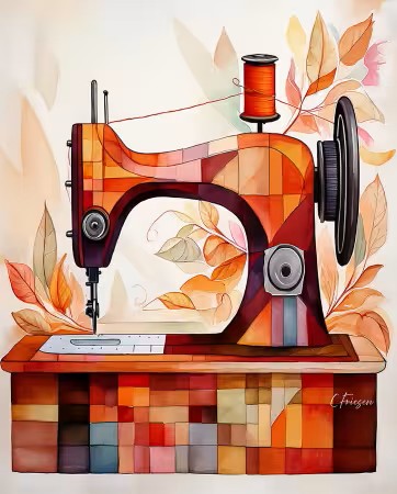 Quiltberry Farm’s Machine Pageant Collection presents “Miss October.” This lovely red and gold patchwork sewing machine design is a perfect greeting card for welcoming fall, celebrating harvest, or October birthdays! This A2 (4.25” x 5.5”) card comes with a size matched envelope.