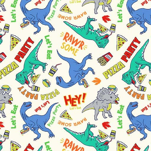 Do you love Dinosaurs? Do you love Pizza? If so, this is the collection for you! “Dino Pizza Party” combines colorful hues with pop art style imagery. Have you ever seen a pizza and taco having a pillow fight?! You will now. Any quilt or room accent you create, your piece will be a conversation starter!